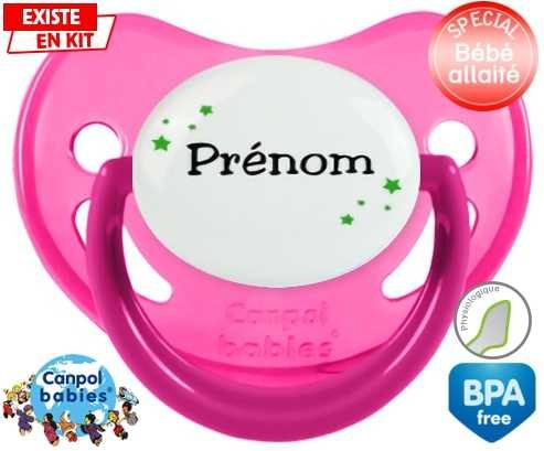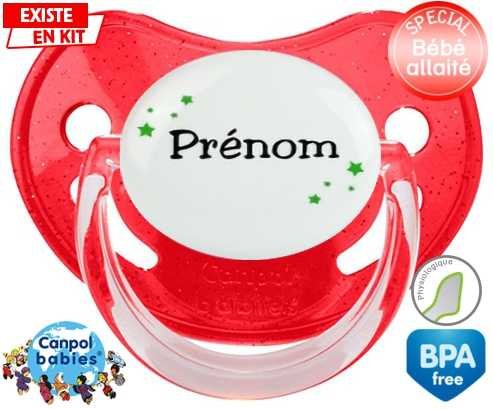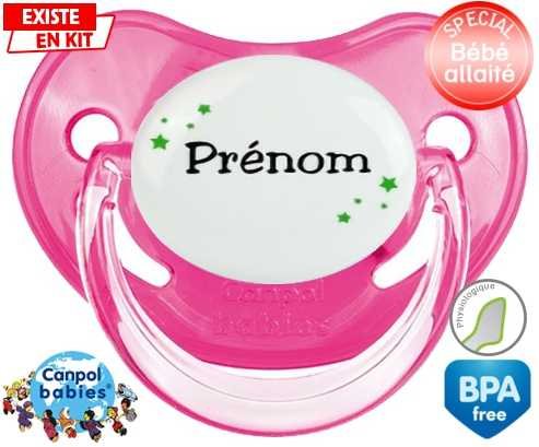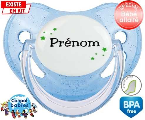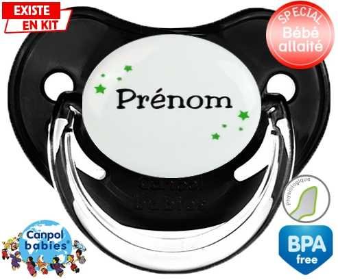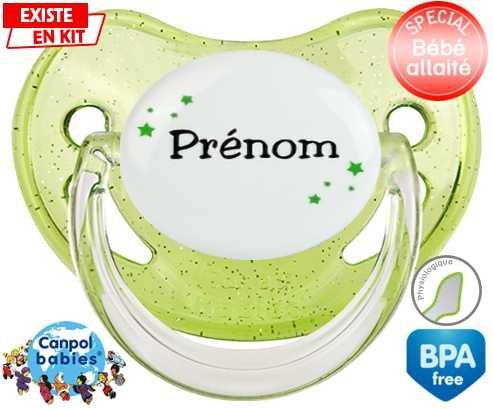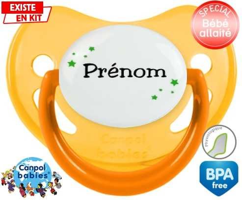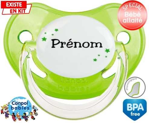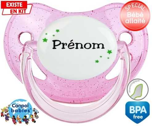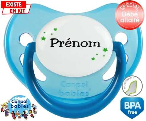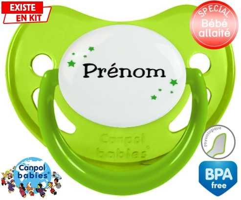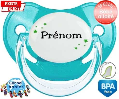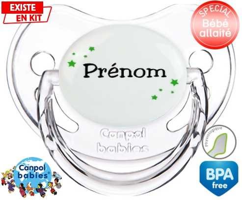 Tetine personnalisee avec le prénom pour bébé Étoiles + prénom : Embout Physiologique en silicone de la marque Canpol Babies avec impression en couleur.