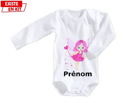 Body personnalisé Fée rose (fille) + prénom avec impression en couleur de fabrication européenne et composés à 100 % du coton le plus doux, il est également conçu pour être aussi pratique que joli.