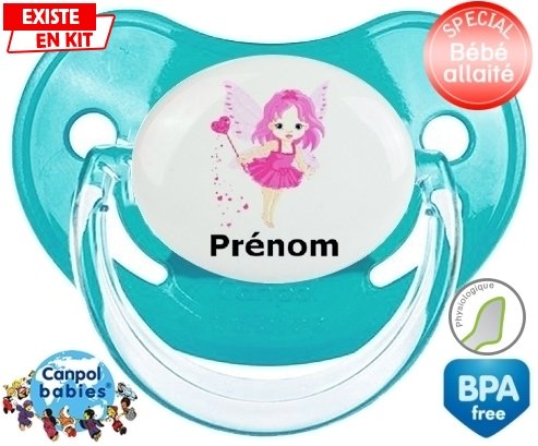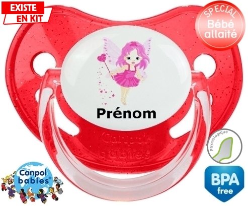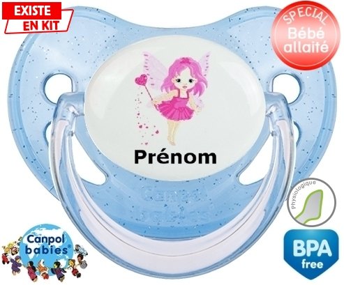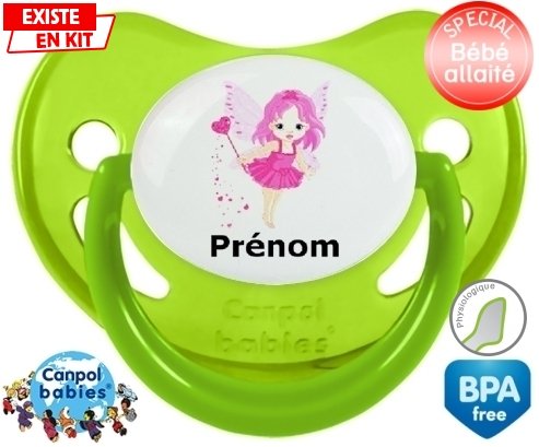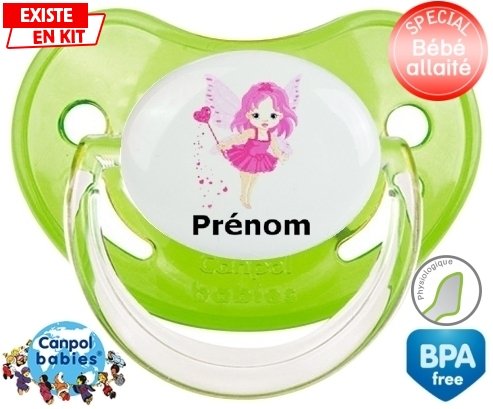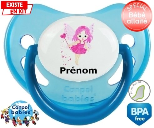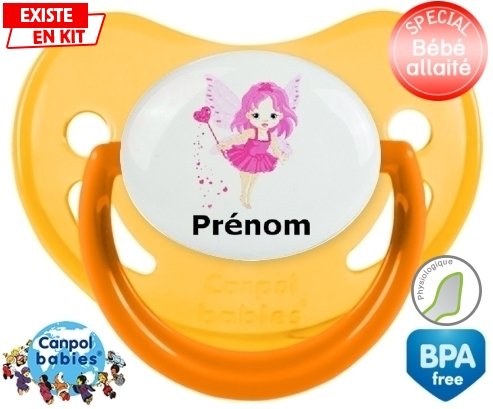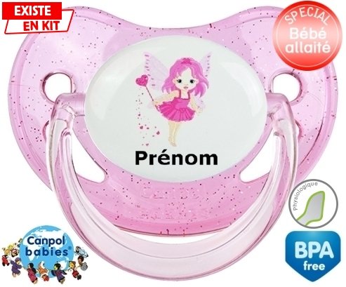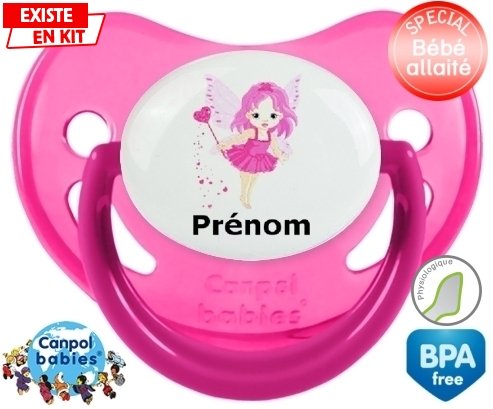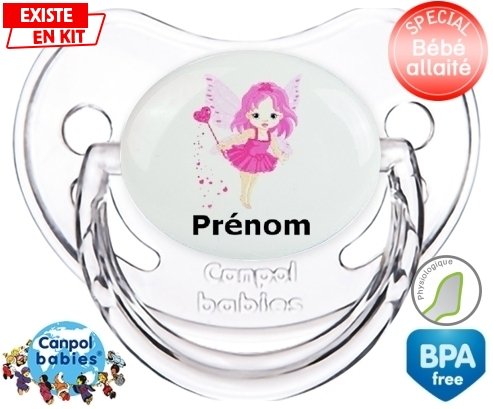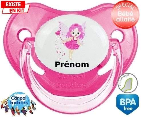 Sucette personnalisée pour bébé Fée rose (fille) + prénom à embout Physiologique en silicone de la marque Canpol Babies avec impression en en Couleurs de la collection Prénom personnalisé.La silicone se reconnaît par sa couleur transparente. C'est une matière souple, douce, sans goût ni odeur et offre à bébé une succion plus facile grâce à sa souplesse.
