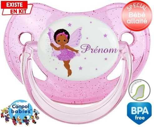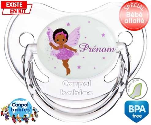 Tetine personnalisee avec le prénom pour bébé Fée style2 + prénom : Embout Physiologique en silicone de la marque Canpol Babies avec impression en couleur.