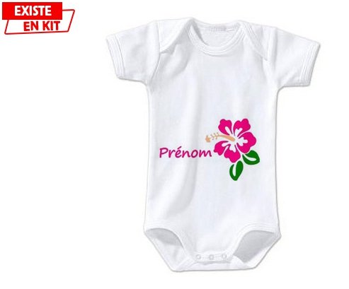 Body personnalisé Fleur guadeloupe + prénom avec impression en couleur de fabrication européenne et composés à 100 % du coton le plus doux, il est également conçu pour être aussi pratique que joli.