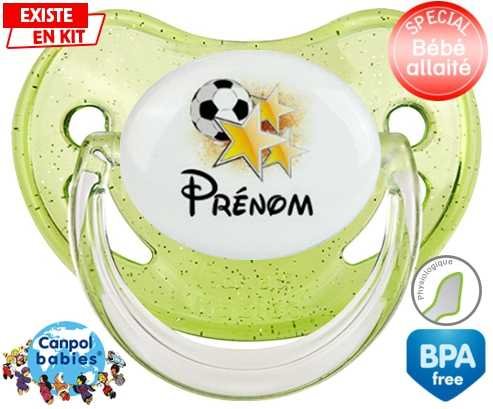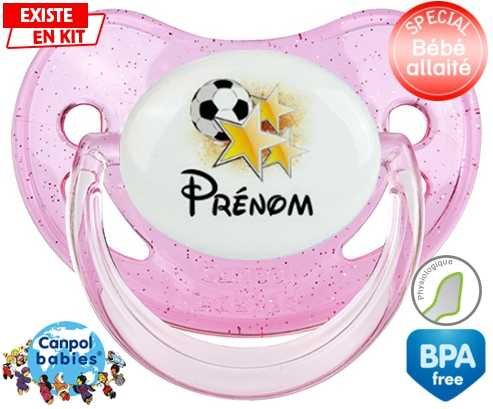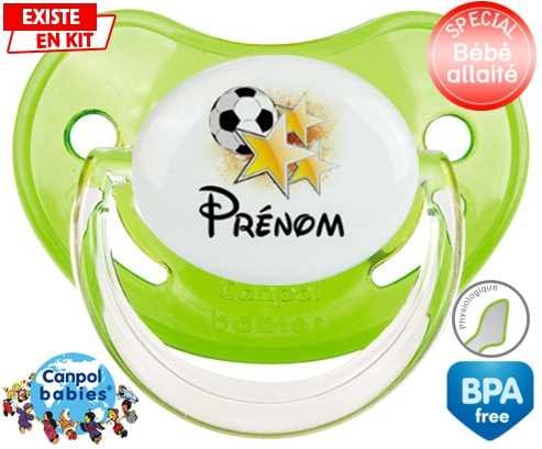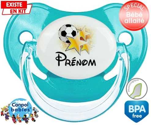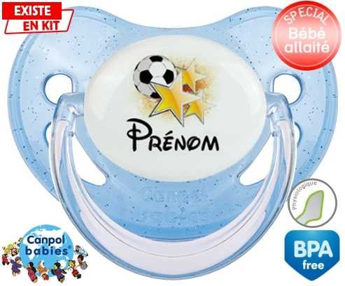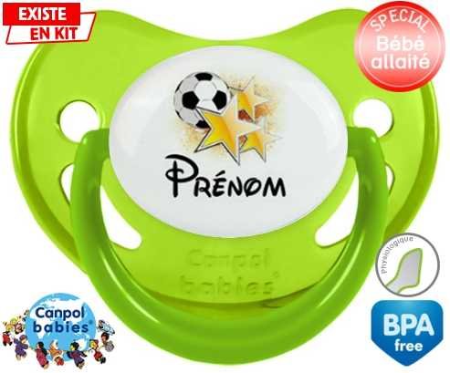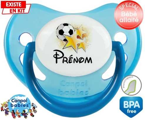 Sucette personnalisée pour bébé Foot étoile + prénom à embout Physiologique en silicone de la marque Canpol Babies avec impression en en Couleurs de la collection Prénom personnalisé.La silicone se reconnaît par sa couleur transparente. C'est une matière souple, douce, sans goût ni odeur et offre à bébé une succion plus facile grâce à sa souplesse.