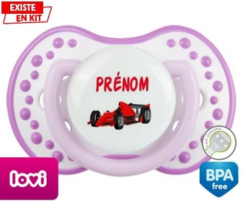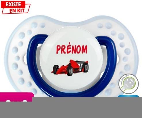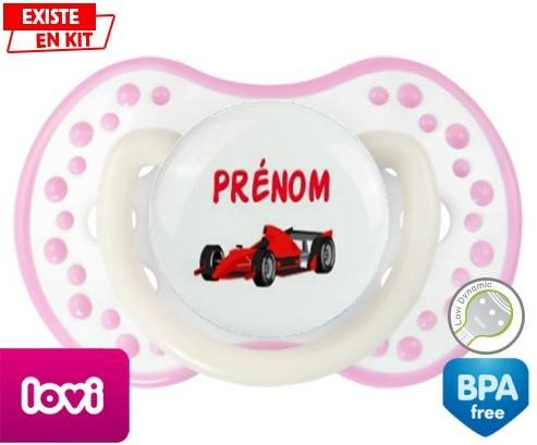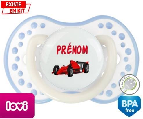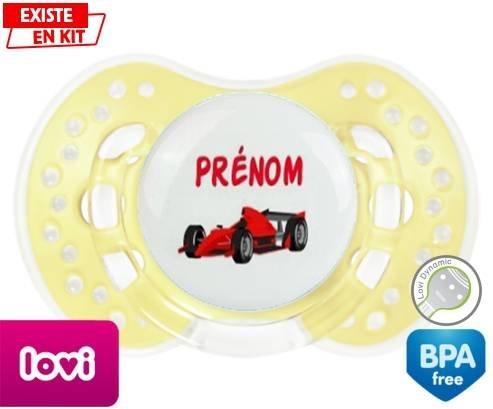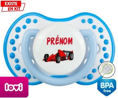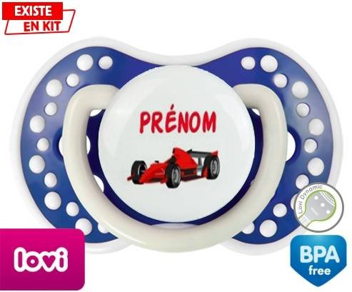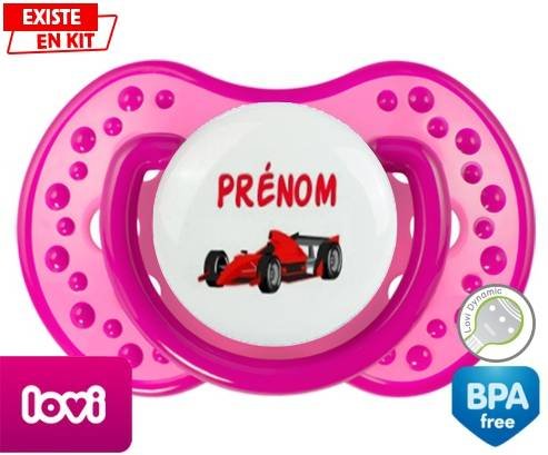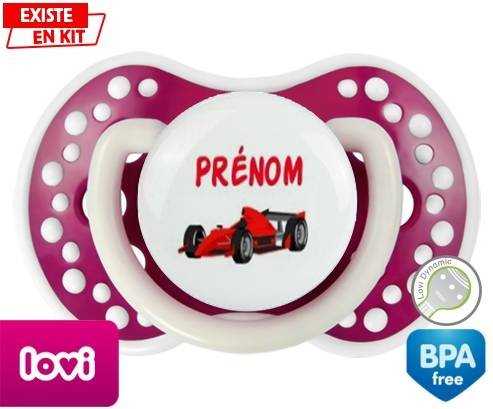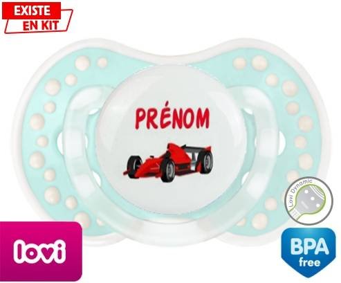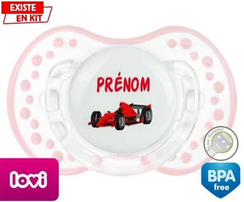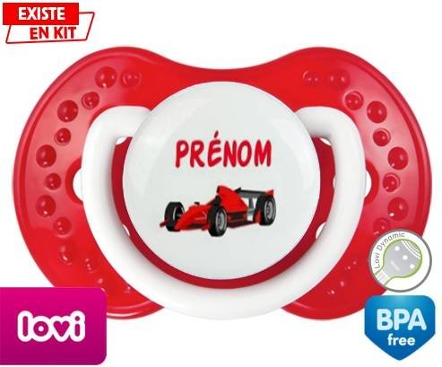 Sucette personnalisée pour bébé Formule 1 + prénom à embout LOVI Dynamic en silicone de la marque Lovi Dynamic avec impression en en Couleurs de la collection Prénom personnalisé.La silicone se reconnaît par sa couleur transparente. C'est une matière souple, douce, sans goût ni odeur et offre à bébé une succion plus facile grâce à sa souplesse.