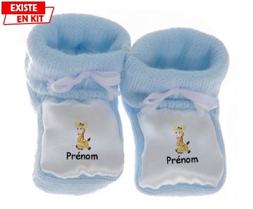Su7.fr vous propose le chausson bébé personnalisé pour nouveau né avec le design : Girafe style1 + prénom . Ce chausson avec une impression en couleur compléte toute la gamme ( sucette, attache-sucette, bavoir, chausson, body , Boîte à sucette, et bonnet).