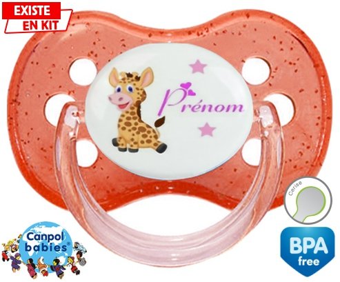 Tetine personnalisee avec le prénom pour bébé Girafe style1 + prénom : Embout Cerise en silicone de la marque Canpol Babies avec impression en couleur.