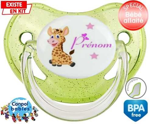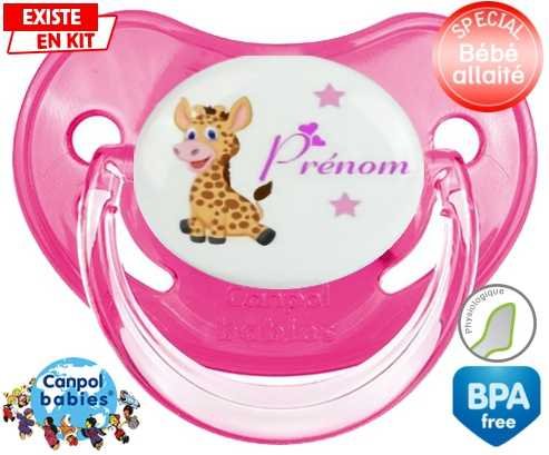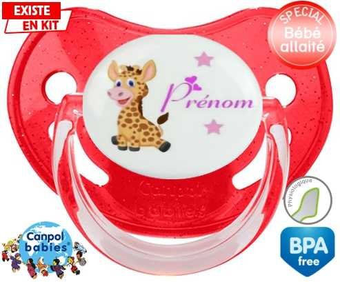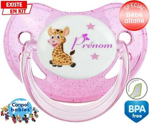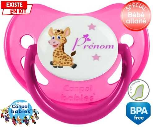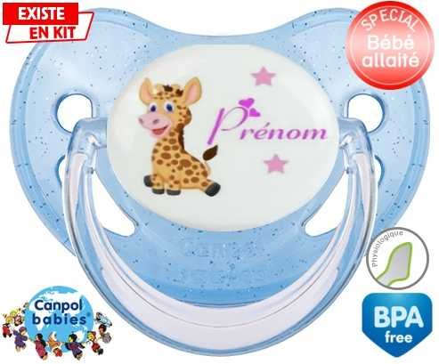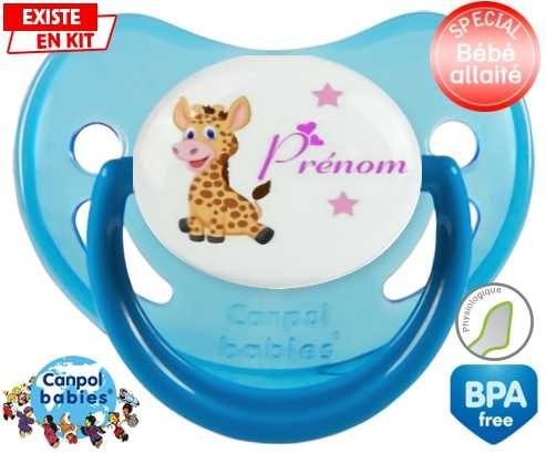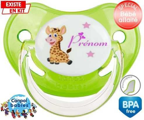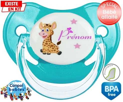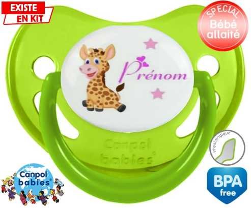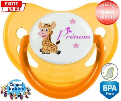 Tétine personnalisée pour bébé Girafe style1 + prénom à embout Physiologique en silicone de la marque Canpol Babies avec impression en en Couleurs de la collection Prénom personnalisé.La silicone se reconnaît par sa couleur transparente. C'est une matière souple, douce, sans goût ni odeur et offre à bébé une succion plus facile grâce à sa souplesse.