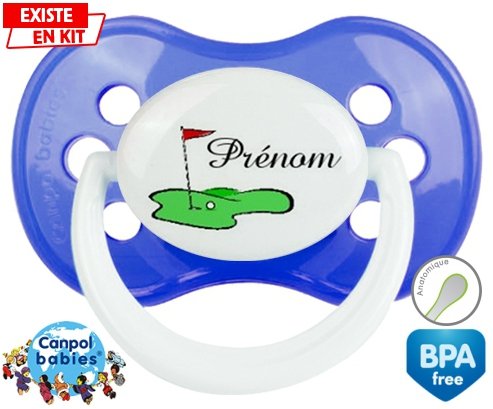 Tetine personnalisee pour bébé Golf + prénom à embout Anatomique en silicone de la marque Canpol Babies avec impression en en Couleurs de la collection Prénom personnalisé.La silicone se reconnaît par sa couleur transparente. C'est une matière souple, douce, sans goût ni odeur et offre à bébé une succion plus facile grâce à sa souplesse.