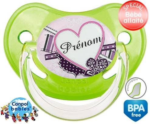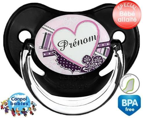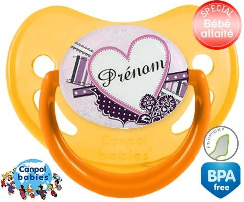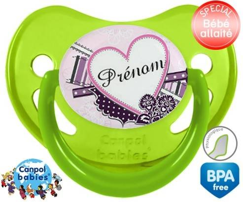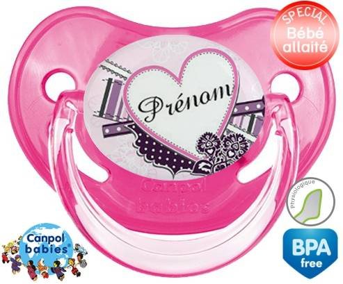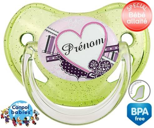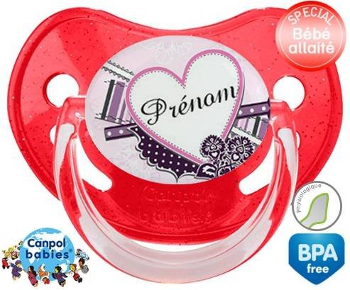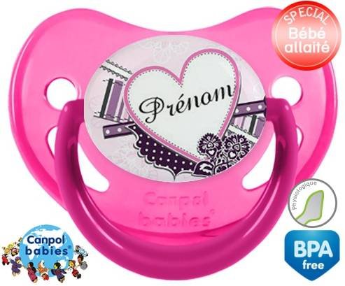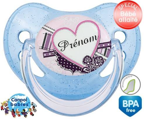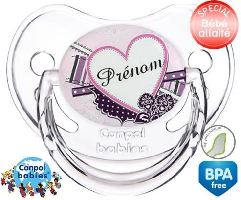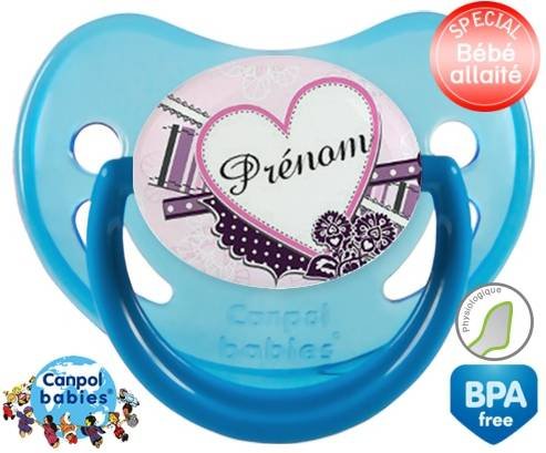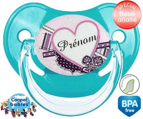 Tetine personnalisee pour bébé Graphisme cœurs turquie + prénom à embout Physiologique en silicone de la marque Canpol Babies avec impression en en Couleurs de la collection Prénom personnalisé.La silicone se reconnaît par sa couleur transparente. C'est une matière souple, douce, sans goût ni odeur et offre à bébé une succion plus facile grâce à sa souplesse.