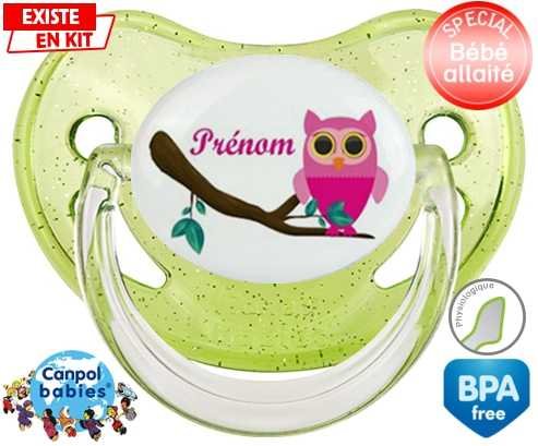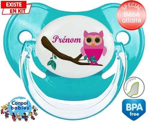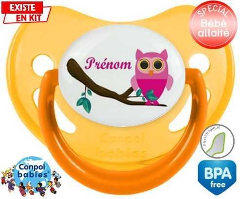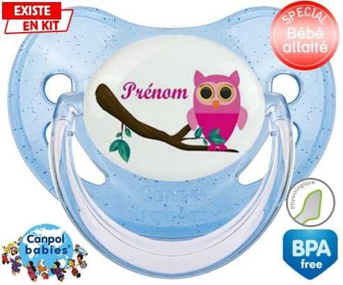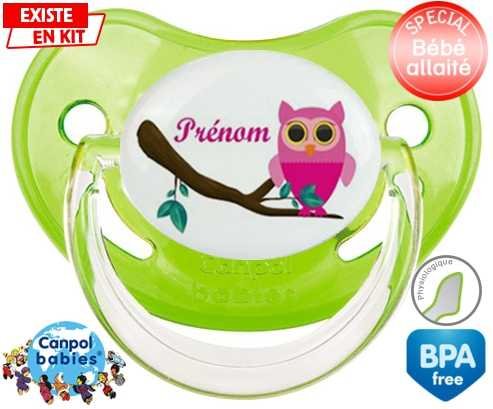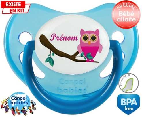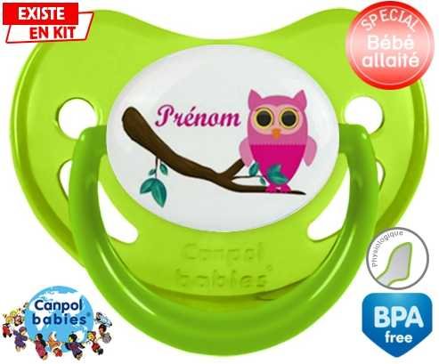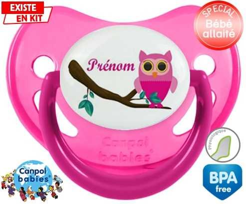 Sucette personnalisée pour bébé Hibou rose + prénom à embout Physiologique en silicone de la marque Canpol Babies avec impression en en Couleurs de la collection Prénom personnalisé.La silicone se reconnaît par sa couleur transparente. C'est une matière souple, douce, sans goût ni odeur et offre à bébé une succion plus facile grâce à sa souplesse.