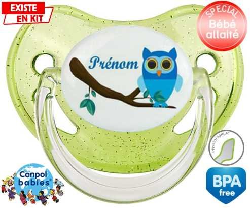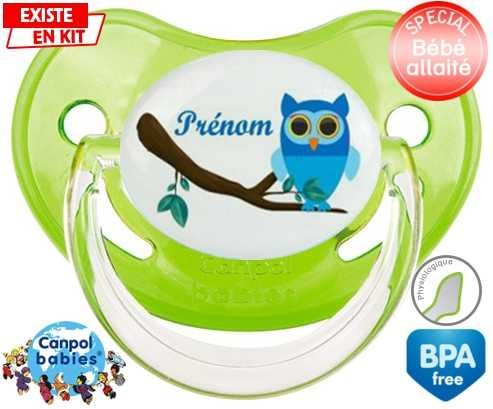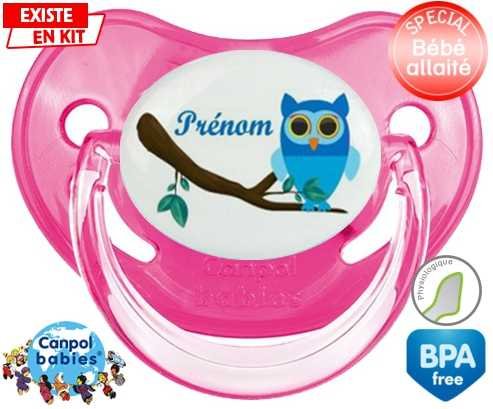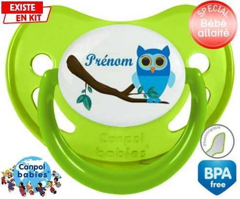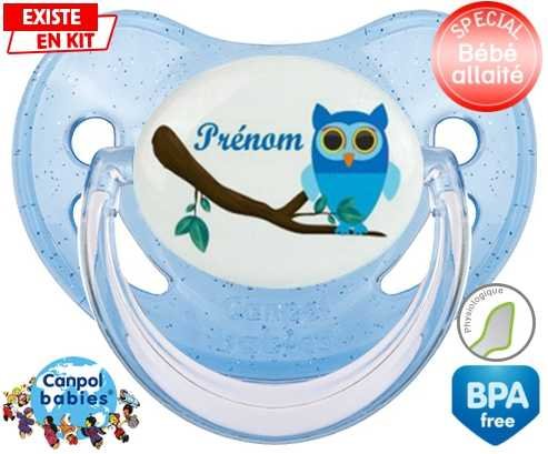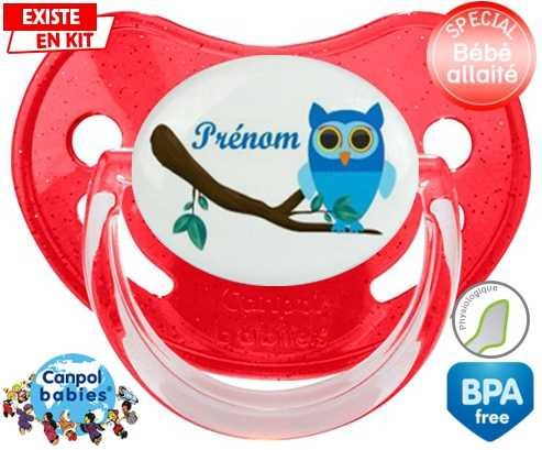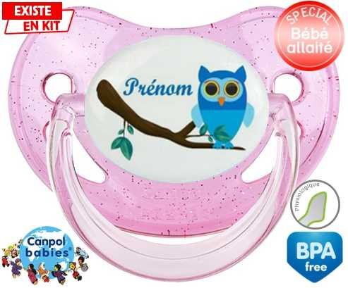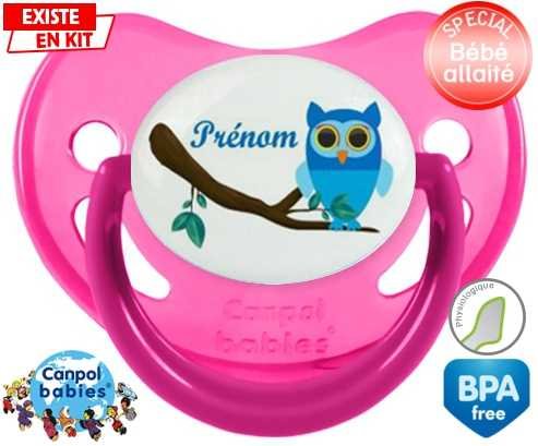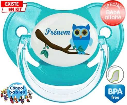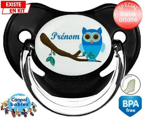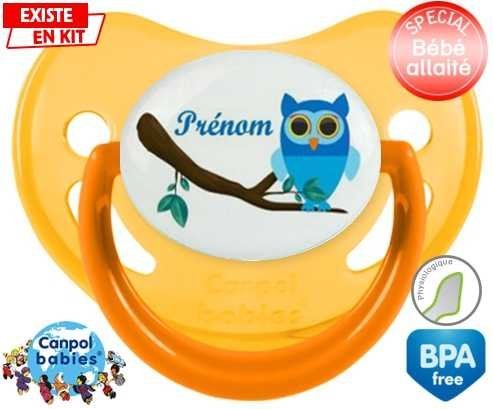 Tetine personnalisee avec le prénom pour bébé Hibou style1 + prénom : Embout Physiologique en silicone de la marque Canpol Babies avec impression en couleur.