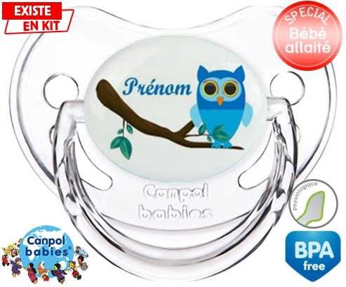 Tetine personnalisee pour bébé Hibou style1 + prénom à embout Physiologique en silicone de la marque Canpol Babies avec impression en en Couleurs de la collection Prénom personnalisé.La silicone se reconnaît par sa couleur transparente. C'est une matière souple, douce, sans goût ni odeur et offre à bébé une succion plus facile grâce à sa souplesse.