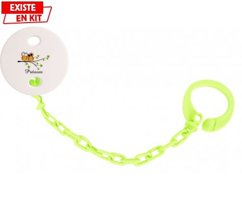 Attache-sucette personnalisé Hibou style2 + prénom avec personnalisation design en couleur. Disponible en plusieurs coloris et plastique facile à laver. Pratique : permet une fixation facile de la sucette de bébé à son doudou et à ses vêtements en un seul clip. Hygiénique : empêche la sucette de tomber par terre et permet ainsi à bébé d'avoir une sucette propre toute la journée Visible : facile à repérer grâce aux motifs colorés.