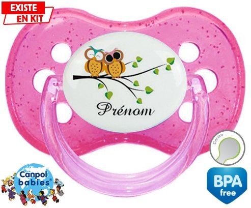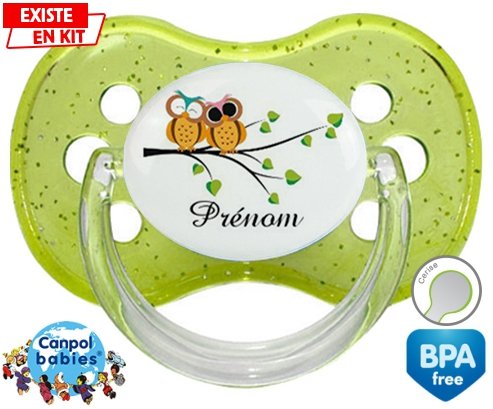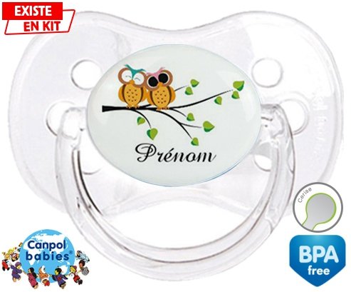 Sucette personnalisée pour bébé Hibou style2 + prénom à embout Cerise en silicone de la marque Canpol Babies avec impression en en Couleurs de la collection Prénom personnalisé.La silicone se reconnaît par sa couleur transparente. C'est une matière souple, douce, sans goût ni odeur et offre à bébé une succion plus facile grâce à sa souplesse.