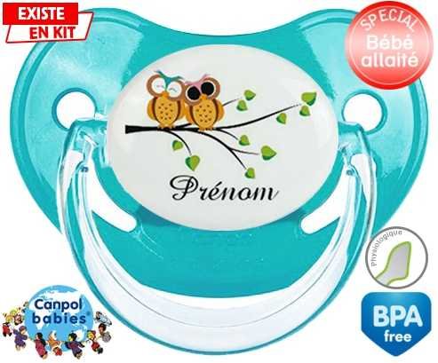 Tetine personnalisee avec le prénom pour bébé Hibou style2 + prénom : Embout Physiologique en silicone de la marque Canpol Babies avec impression en couleur.