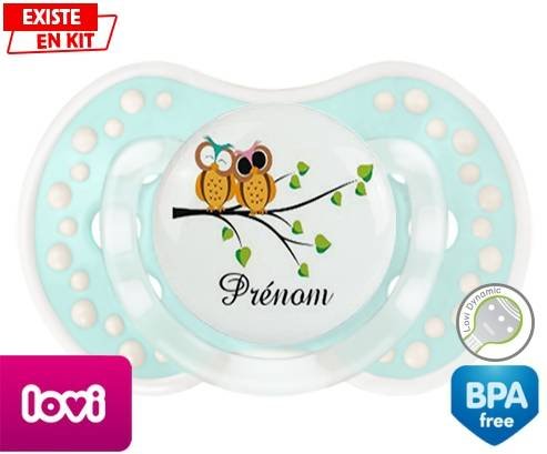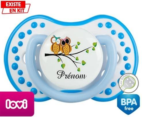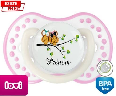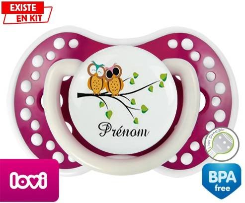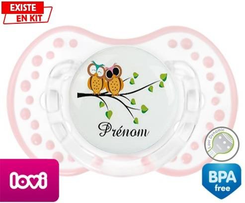 Tétine personnalisée pour bébé Hibou style2 + prénom à embout LOVI Dynamic en silicone de la marque Lovi Dynamic avec impression en en Couleurs de la collection Prénom personnalisé.La silicone se reconnaît par sa couleur transparente. C'est une matière souple, douce, sans goût ni odeur et offre à bébé une succion plus facile grâce à sa souplesse.