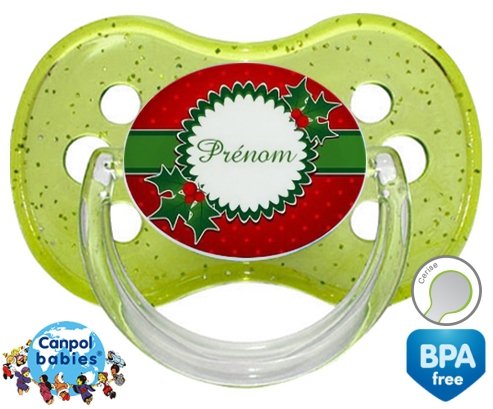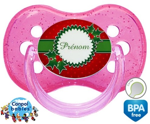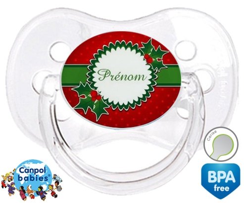 Sucette personnalisée pour bébé Houx + prénom à embout Cerise en silicone de la marque Canpol Babies avec impression en en Couleurs de la collection Prénom personnalisé.La silicone se reconnaît par sa couleur transparente. C'est une matière souple, douce, sans goût ni odeur et offre à bébé une succion plus facile grâce à sa souplesse.