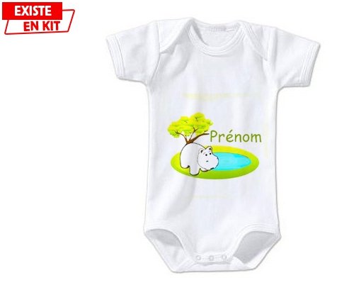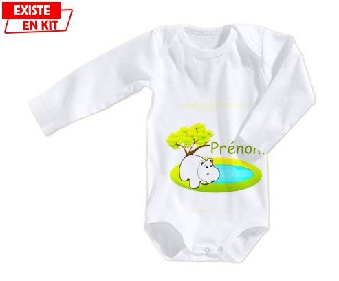 Body personnalisé Hypopotame + prénom avec impression en couleur de fabrication européenne et composés à 100 % du coton le plus doux, il est également conçu pour être aussi pratique que joli.
