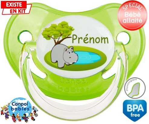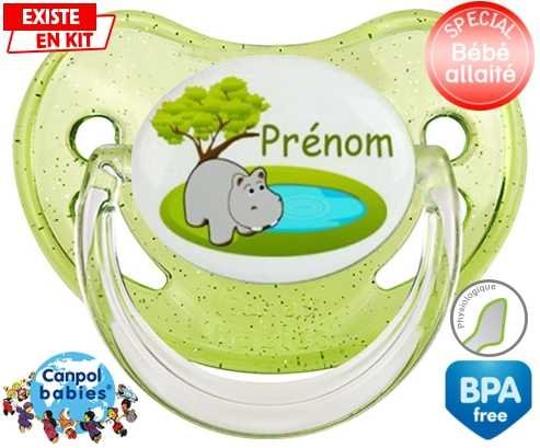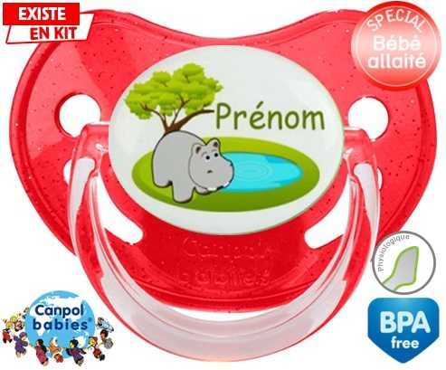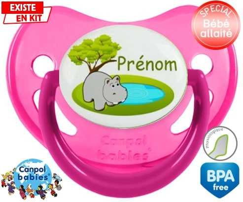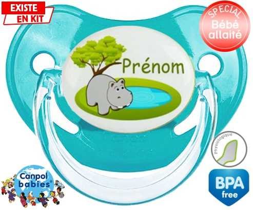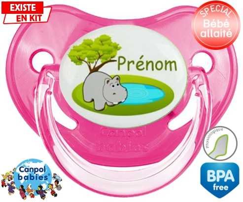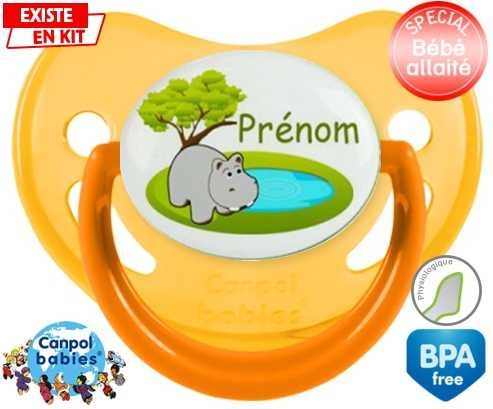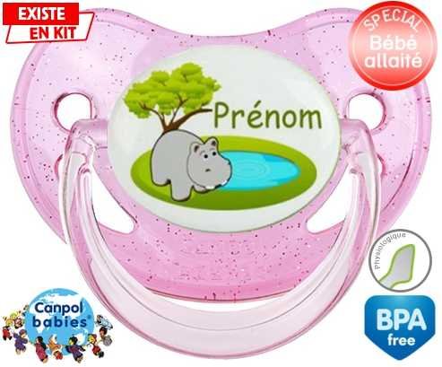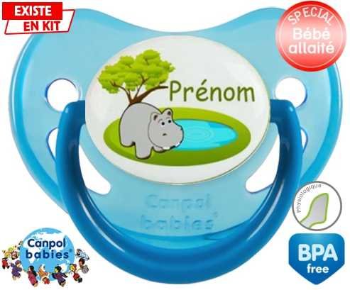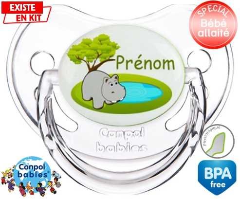 Tétine personnalisée pour bébé Hypopotame + prénom à embout Physiologique en silicone de la marque Canpol Babies avec impression en en Couleurs de la collection Prénom personnalisé.La silicone se reconnaît par sa couleur transparente. C'est une matière souple, douce, sans goût ni odeur et offre à bébé une succion plus facile grâce à sa souplesse.