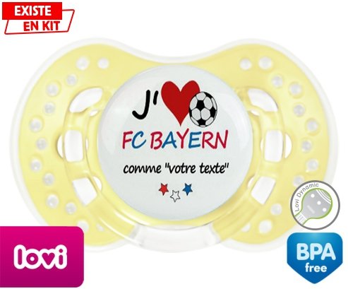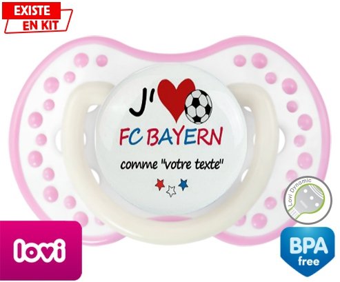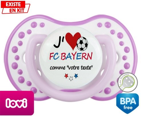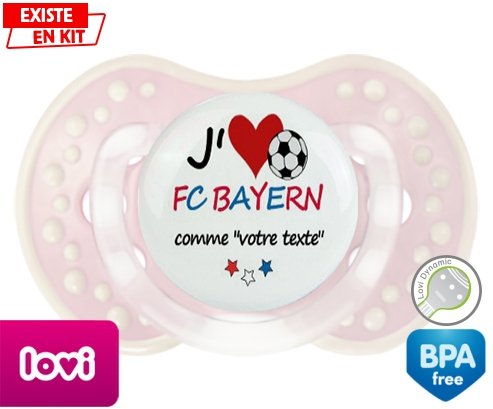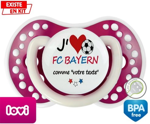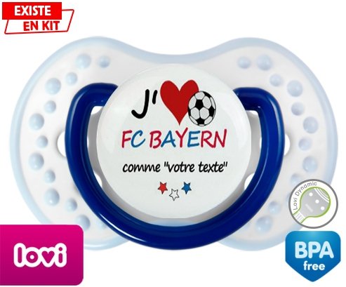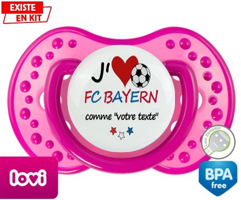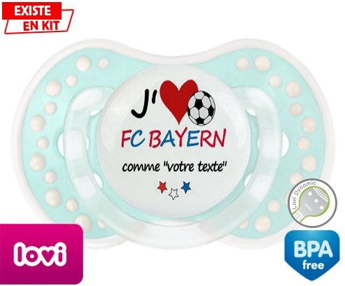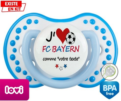 Tetine personnalisee avec le prénom pour bébé J'aime fc bayern + prénom : Embout LOVI Dynamic en silicone de la marque Lovi Dynamic avec impression en couleur.