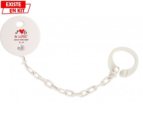 Attache-sucette personnalisé J'aime le losc + prénom avec personnalisation design en couleur. Disponible en plusieurs coloris et plastique facile à laver. Pratique : permet une fixation facile de la sucette de bébé à son doudou et à ses vêtements en un seul clip. Hygiénique : empêche la sucette de tomber par terre et permet ainsi à bébé d'avoir une sucette propre toute la journée Visible : facile à repérer grâce aux motifs colorés.