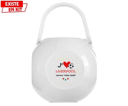 Boîte à sucette avec design : J'aime liverpool + prénom , impression de qualité et en couleur. Pratique : elle transporte la sucette en tout lieu. Grâce à sa poignée souple, elle est facile à accrocher à la poussette, sac à langer ... Cette boîte de rangement flexible, est la solution hygiénique pour protéger les sucettes de son enfant quand il ne les utilise pas. Peut contenir jusqu'à deux sucettes.