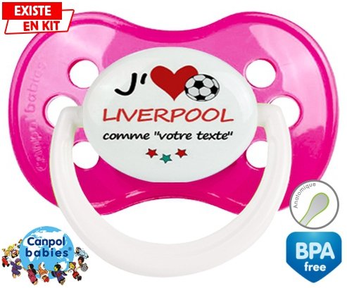 Sucette personnalisée avec le prénom pour bébé J'aime liverpool + prénom : Sucette Anatomique en silicone de la marque Canpol Babies avec impression en couleur.