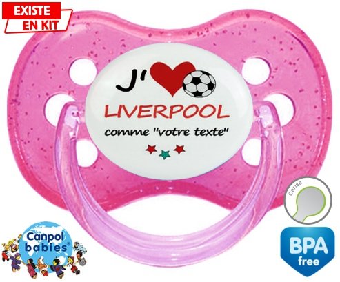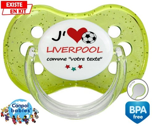 Tetine personnalisee pour bébé J'aime liverpool + prénom à embout Cerise en silicone de la marque Canpol Babies avec impression en en Couleurs de la collection Prénom personnalisé.La silicone se reconnaît par sa couleur transparente. C'est une matière souple, douce, sans goût ni odeur et offre à bébé une succion plus facile grâce à sa souplesse.