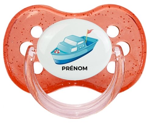 Sucette personnalisée pour bébé design : Jouet toys Bateau design-3 avec prénom Sucette Cerise en silicone de la marque Canpol Babies avec impression en couleur.un cadeau idéal pour vos bébés. Nos sucettes sont conçues avec l'aide de pédiatres et de dentistes pour respecter la physiologie de bébé et répondre à son réflexe naturel de succion.