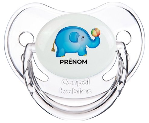 Sucette personnalisée pour bébé avec le design : Jouet toys éléphant avec prénom Sucette Physiologique en silicone de la marque Canpol Babies avec impression en couleur.un cadeau idéal pour vos bébés. Nos sucettes sont conçues avec l'aide de pédiatres et de dentistes pour respecter la physiologie de bébé et répondre à son réflexe naturel de succion.