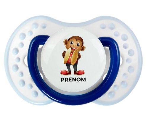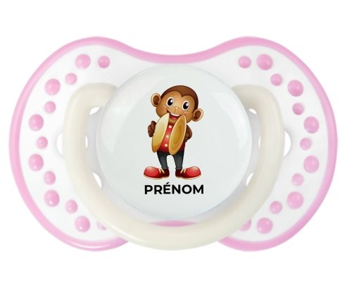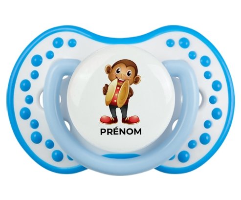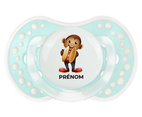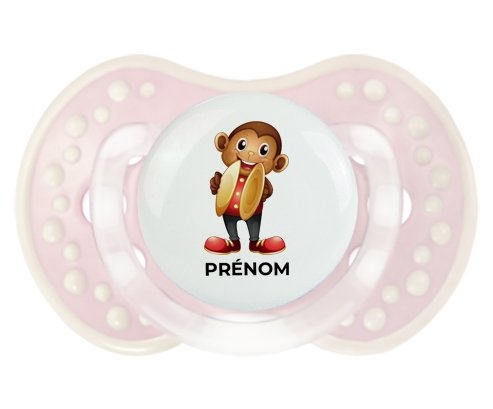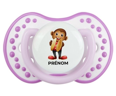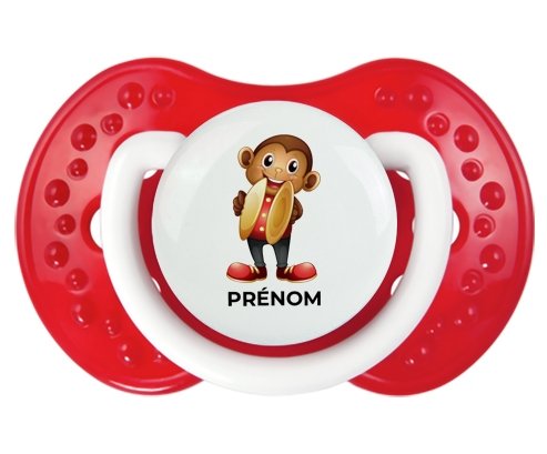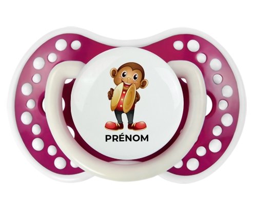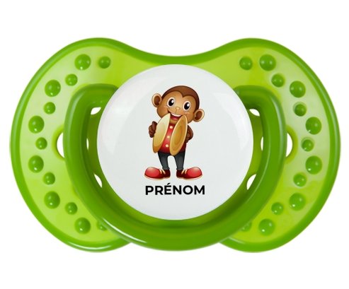 Sucette personnalisée pour bébé design : Jouet toys singe avec prénom Sucette LOVI Dynamic en silicone de la marque Lovi Dynamic avec impression en couleur.un cadeau idéal pour vos bébés. Nos sucettes sont conçues avec l'aide de pédiatres et de dentistes pour respecter la physiologie de bébé et répondre à son réflexe naturel de succion.