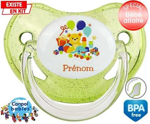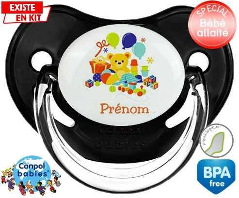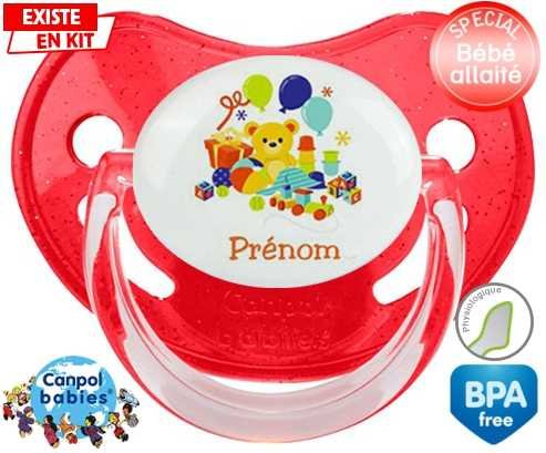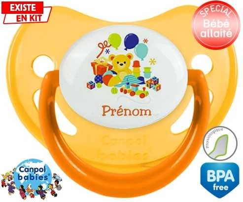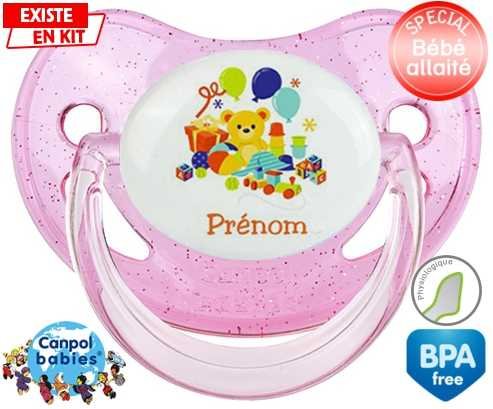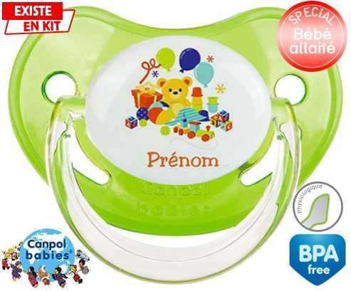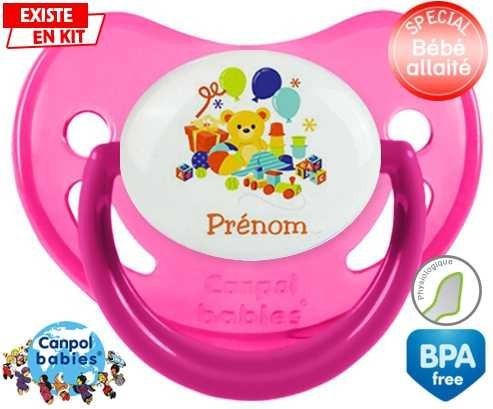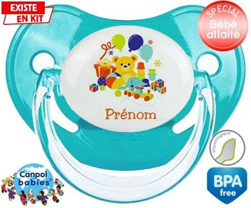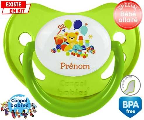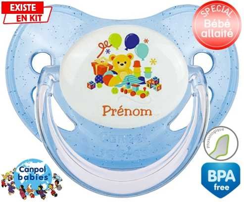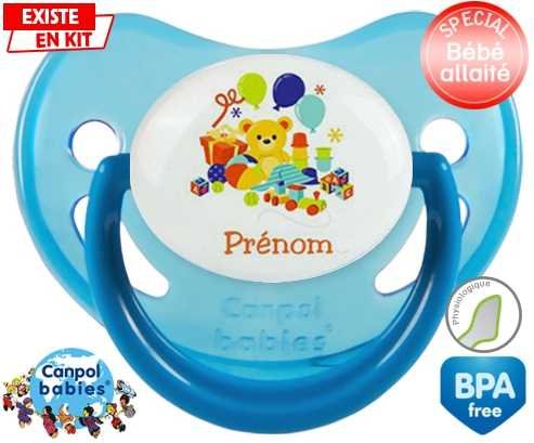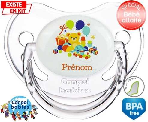 Tetine personnalisee pour bébé Jouets style1 + prénom à embout Physiologique en silicone de la marque Canpol Babies avec impression en en Couleurs de la collection Prénom personnalisé.La silicone se reconnaît par sa couleur transparente. C'est une matière souple, douce, sans goût ni odeur et offre à bébé une succion plus facile grâce à sa souplesse.