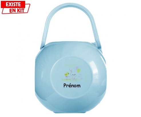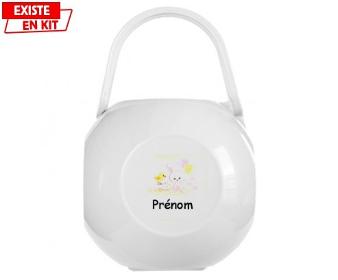 Boîte à sucette avec design : Lapin train + prénom , impression de qualité et en couleur. Pratique : elle transporte la sucette en tout lieu. Grâce à sa poignée souple, elle est facile à accrocher à la poussette, sac à langer ... Cette boîte de rangement flexible, est la solution hygiénique pour protéger les sucettes de son enfant quand il ne les utilise pas. Peut contenir jusqu'à deux sucettes.