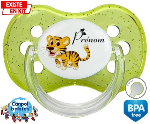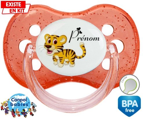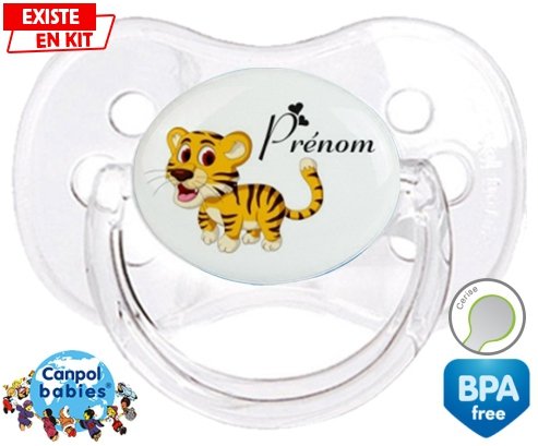 Sucette personnalisée pour bébé Lion style1 + prénom à embout Cerise en silicone de la marque Canpol Babies avec impression en en Couleurs de la collection Prénom personnalisé.La silicone se reconnaît par sa couleur transparente. C'est une matière souple, douce, sans goût ni odeur et offre à bébé une succion plus facile grâce à sa souplesse.