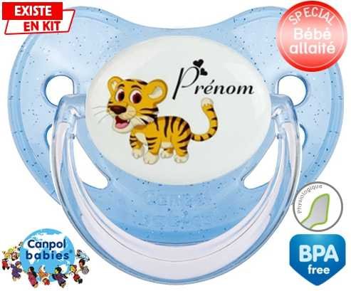 Sucette personnalisée pour bébé Lion style1 + prénom à embout Physiologique en silicone de la marque Canpol Babies avec impression en en Couleurs de la collection Prénom personnalisé.La silicone se reconnaît par sa couleur transparente. C'est une matière souple, douce, sans goût ni odeur et offre à bébé une succion plus facile grâce à sa souplesse.
