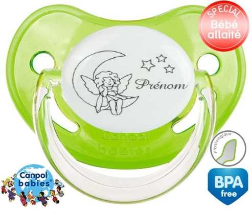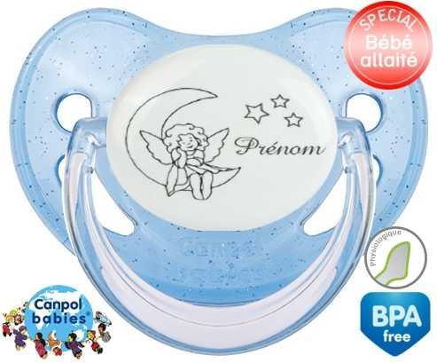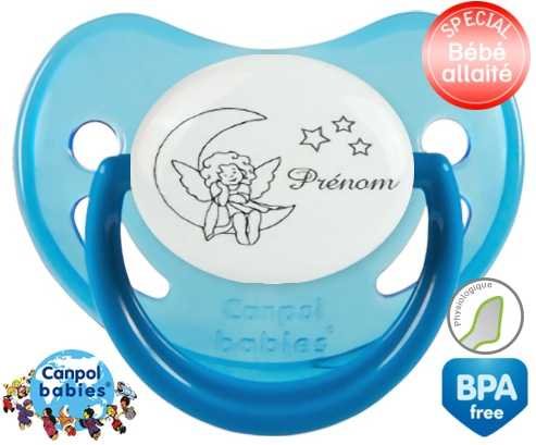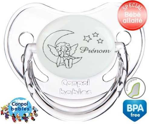Sucette personnalisée pour bébé Lune étoiles + prénom à embout Physiologique en silicone de la marque Canpol Babies avec impression en en Gris de la collection Prénom personnalisé.La silicone se reconnaît par sa couleur transparente. C'est une matière souple, douce, sans goût ni odeur et offre à bébé une succion plus facile grâce à sa souplesse.