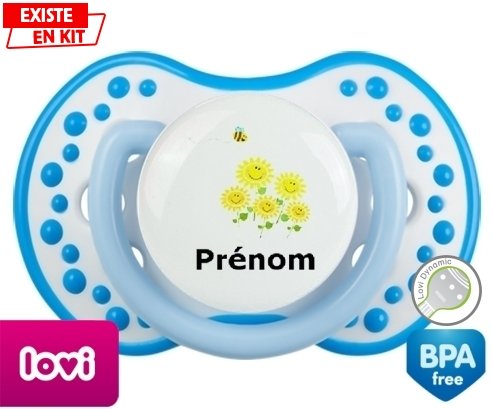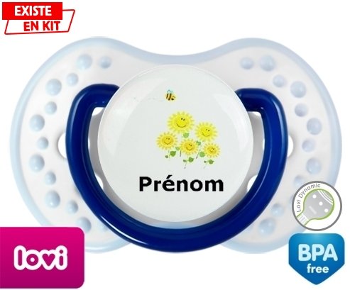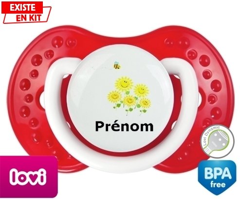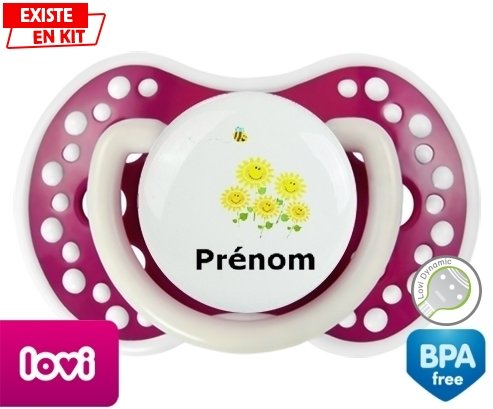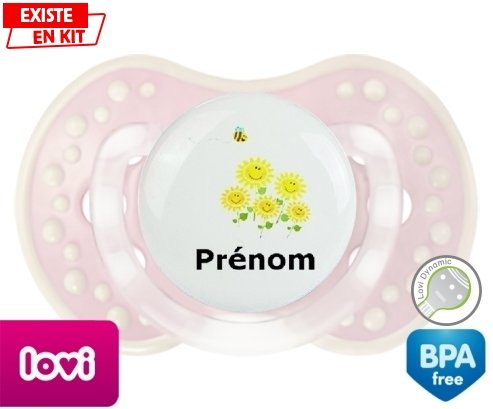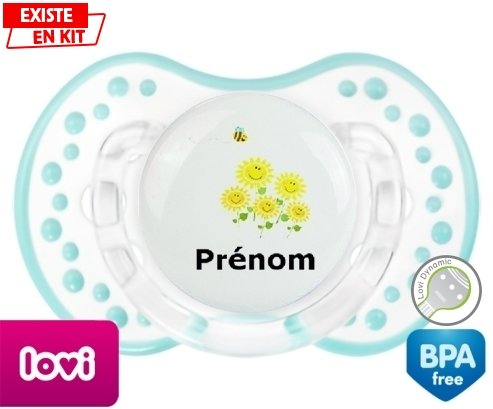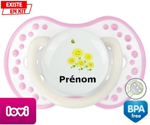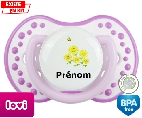Tetine personnalisee pour bébé Margueritte + prénom à embout LOVI Dynamic en silicone de la marque Lovi Dynamic avec impression en en Couleurs de la collection Prénom personnalisé.La silicone se reconnaît par sa couleur transparente. C'est une matière souple, douce, sans goût ni odeur et offre à bébé une succion plus facile grâce à sa souplesse.