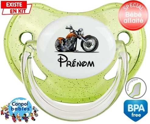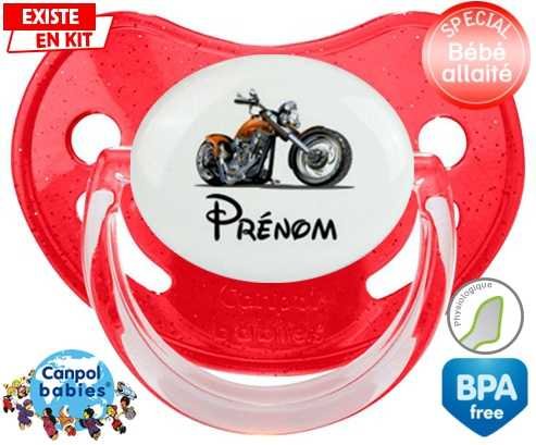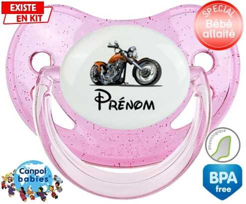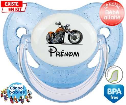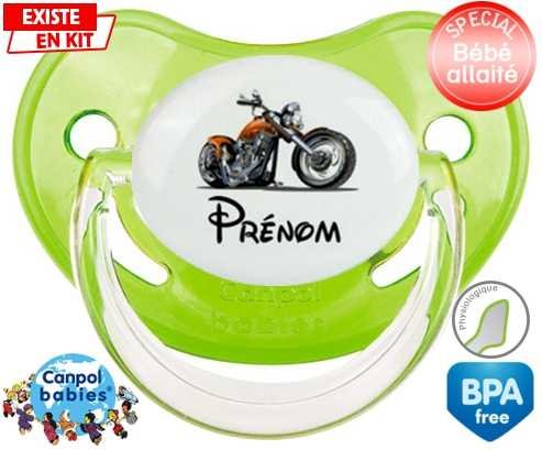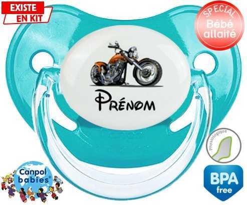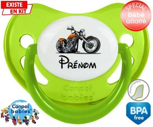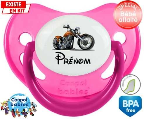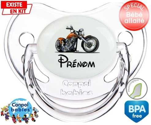 Sucette personnalisée pour bébé Moto et style2 + prénom à embout Physiologique en silicone de la marque Canpol Babies avec impression en en Couleurs de la collection Prénom personnalisé.La silicone se reconnaît par sa couleur transparente. C'est une matière souple, douce, sans goût ni odeur et offre à bébé une succion plus facile grâce à sa souplesse.