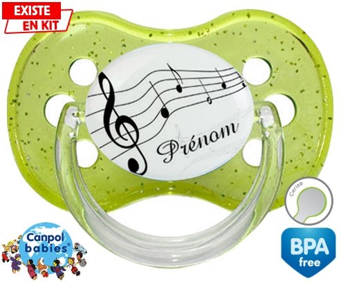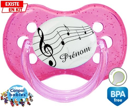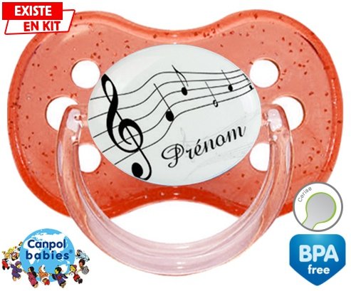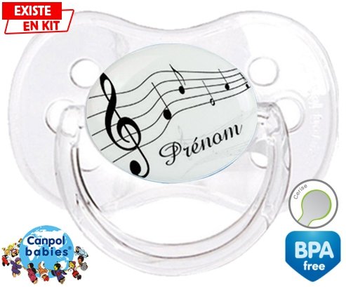 Tetine personnalisee pour bébé Musique + prénom à embout Cerise en silicone de la marque Canpol Babies avec impression en en Couleurs de la collection Prénom personnalisé.La silicone se reconnaît par sa couleur transparente. C'est une matière souple, douce, sans goût ni odeur et offre à bébé une succion plus facile grâce à sa souplesse.