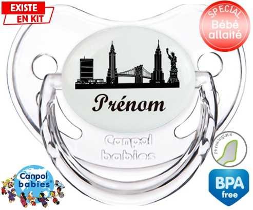 Tetine personnalisee pour bébé New york + prénom à embout Physiologique en silicone de la marque Canpol Babies avec impression en en Couleurs de la collection Prénom personnalisé.La silicone se reconnaît par sa couleur transparente. C'est une matière souple, douce, sans goût ni odeur et offre à bébé une succion plus facile grâce à sa souplesse.