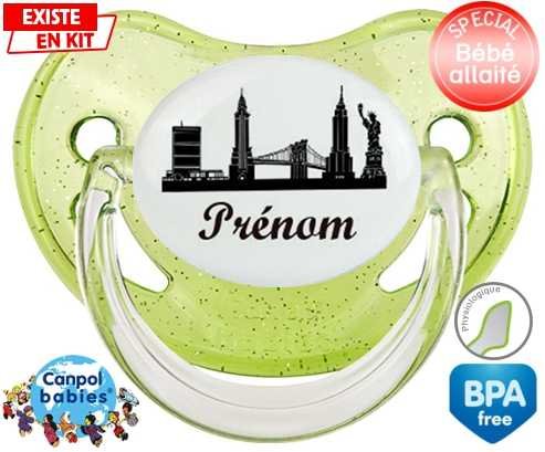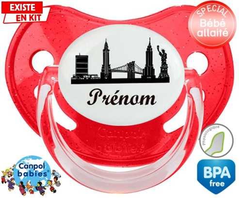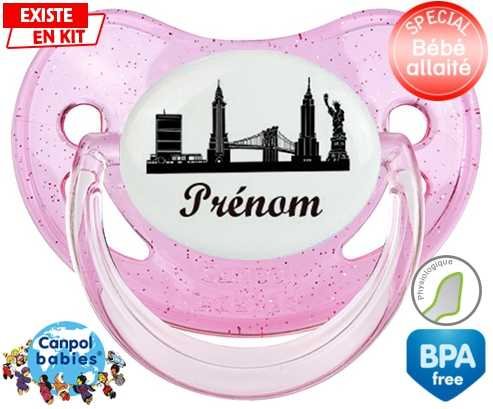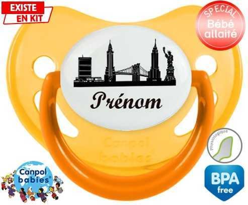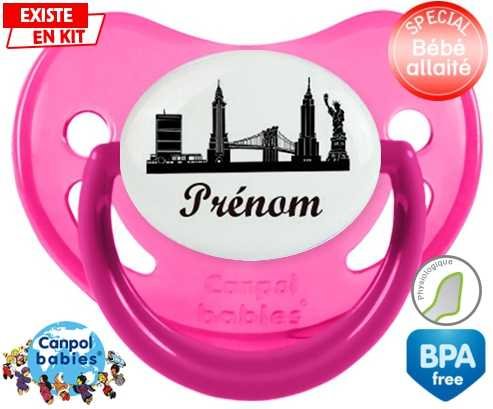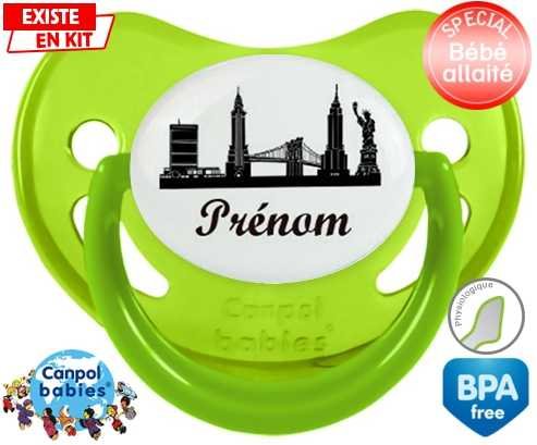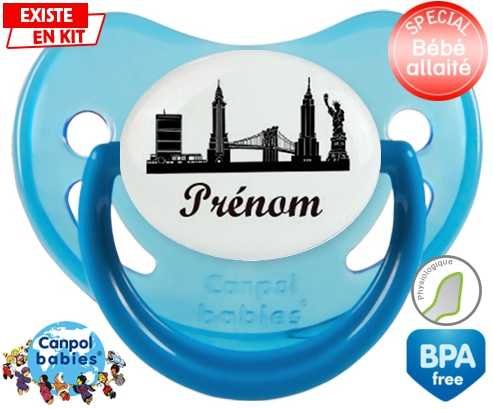 Tetine personnalisee avec le prénom pour bébé New york + prénom : Embout Physiologique en silicone de la marque Canpol Babies avec impression en couleur.