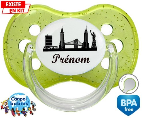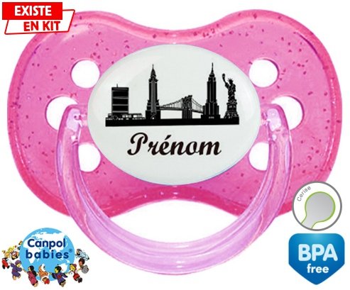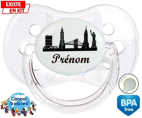 Tétine personnalisée pour bébé New york + prénom à embout Cerise en silicone de la marque Canpol Babies avec impression en en Couleurs de la collection Prénom personnalisé.La silicone se reconnaît par sa couleur transparente. C'est une matière souple, douce, sans goût ni odeur et offre à bébé une succion plus facile grâce à sa souplesse.