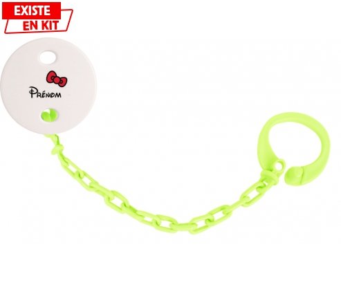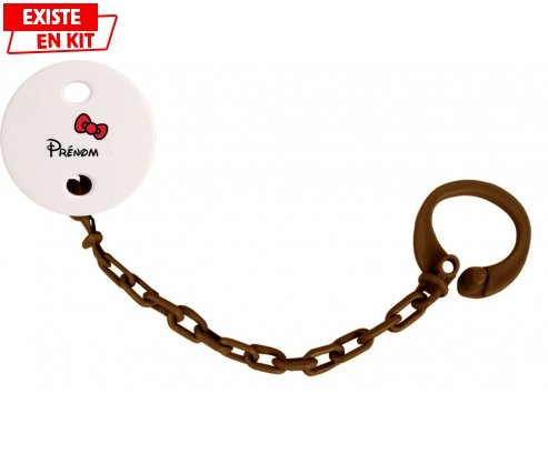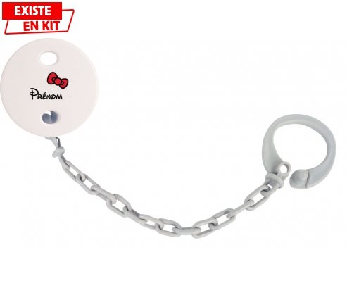 Offrez à bébé une attache-tétine personnalisée pratique et élégante. Fabriquée en plastique facile à laver, elle se fixe aisément grâce à sa pince clipsable, assurant que la tétine ne se perde plus. Personnalisée avec un prénom et un joli motif nœud, elle crée un lien unique et rassurant. Compatible avec toutes les tétines à anneau, cette attache est le compagnon idéal pour le confort de votre bébé.