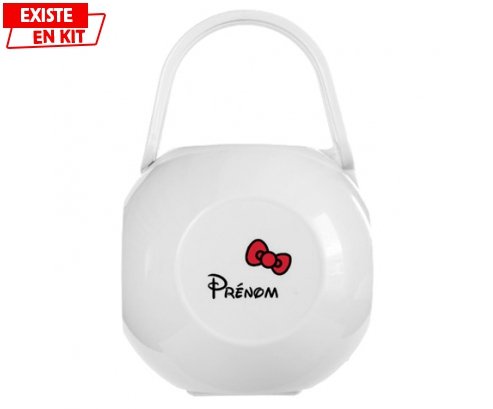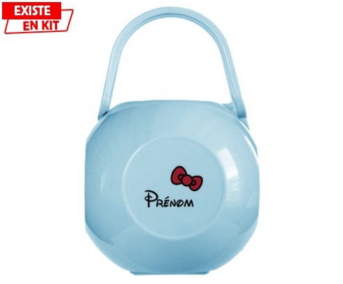 Boîte à sucette avec design : Noeud + prénom , impression de qualité et en couleur. Pratique : elle transporte la sucette en tout lieu. Grâce à sa poignée souple, elle est facile à accrocher à la poussette, sac à langer ... Cette boîte de rangement flexible, est la solution hygiénique pour protéger les sucettes de son enfant quand il ne les utilise pas. Peut contenir jusqu'à deux sucettes.