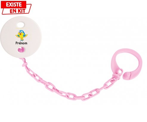 Attache-sucette personnalisé Oiseau bleu style1 + prénom avec personnalisation design en couleur. Disponible en plusieurs coloris et plastique facile à laver. Pratique : permet une fixation facile de la sucette de bébé à son doudou et à ses vêtements en un seul clip. Hygiénique : empêche la sucette de tomber par terre et permet ainsi à bébé d'avoir une sucette propre toute la journée Visible : facile à repérer grâce aux motifs colorés.