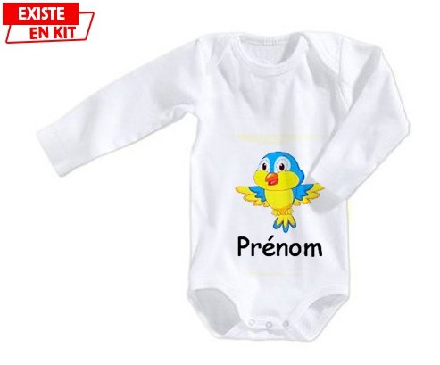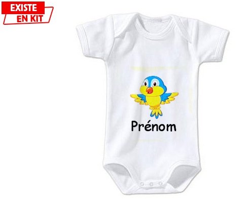 Body personnalisé Oiseau bleu style1 + prénom avec impression en couleur de fabrication européenne et composés à 100 % du coton le plus doux, il est également conçu pour être aussi pratique que joli.