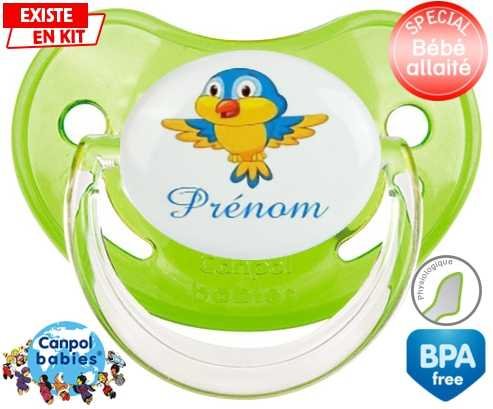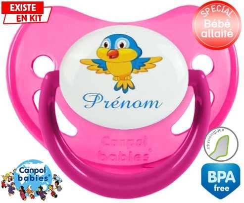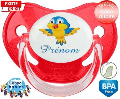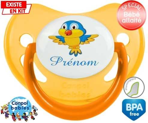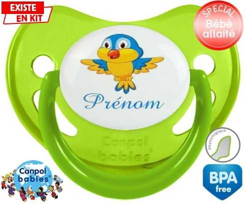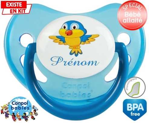 Sucette personnalisée pour bébé Oiseau bleu style1 + prénom à embout Physiologique en silicone de la marque Canpol Babies avec impression en en Couleurs de la collection Prénom personnalisé.La silicone se reconnaît par sa couleur transparente. C'est une matière souple, douce, sans goût ni odeur et offre à bébé une succion plus facile grâce à sa souplesse.