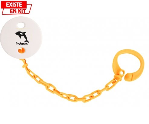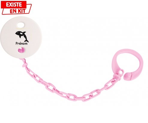 Attache-sucette personnalisé Orque + prénom avec personnalisation design en couleur. Disponible en plusieurs coloris et plastique facile à laver. Pratique : permet une fixation facile de la sucette de bébé à son doudou et à ses vêtements en un seul clip. Hygiénique : empêche la sucette de tomber par terre et permet ainsi à bébé d'avoir une sucette propre toute la journée Visible : facile à repérer grâce aux motifs colorés.