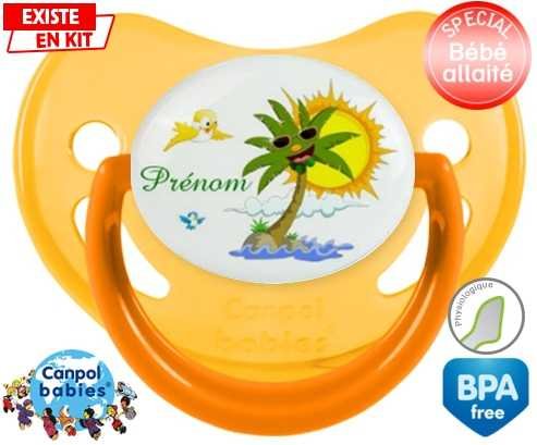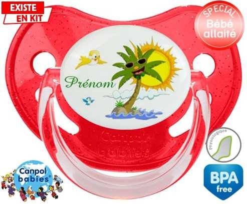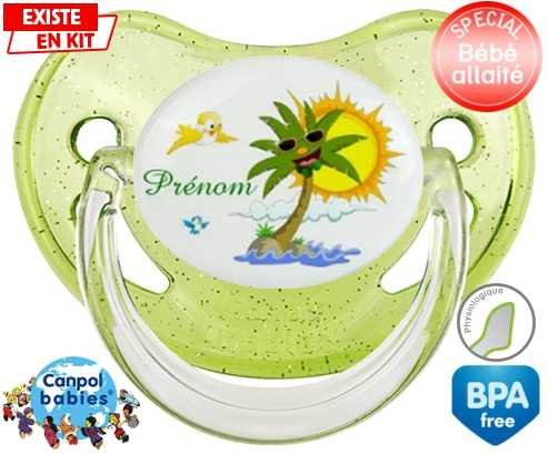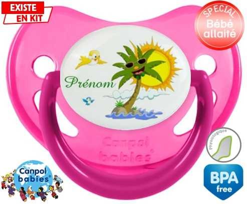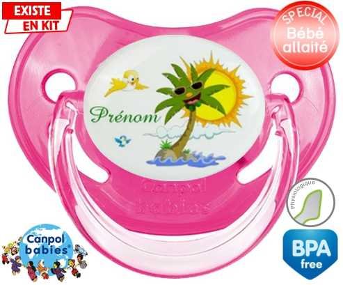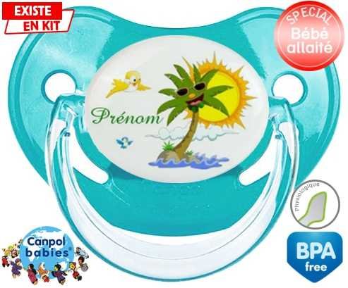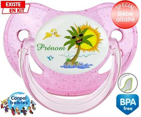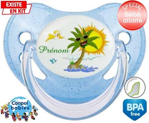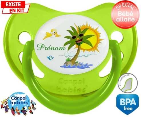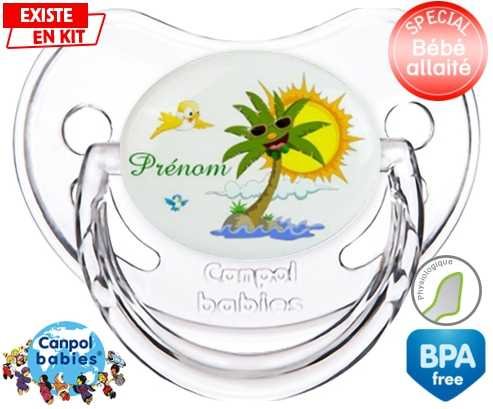 Sucette personnalisée pour bébé Palmier style2 + prénom à embout Physiologique en silicone de la marque Canpol Babies avec impression en en Couleurs de la collection Prénom personnalisé.La silicone se reconnaît par sa couleur transparente. C'est une matière souple, douce, sans goût ni odeur et offre à bébé une succion plus facile grâce à sa souplesse.