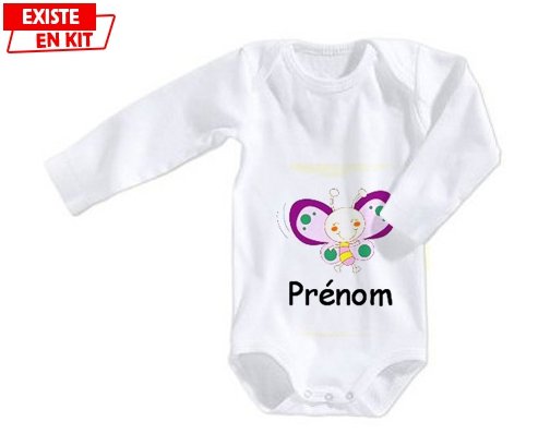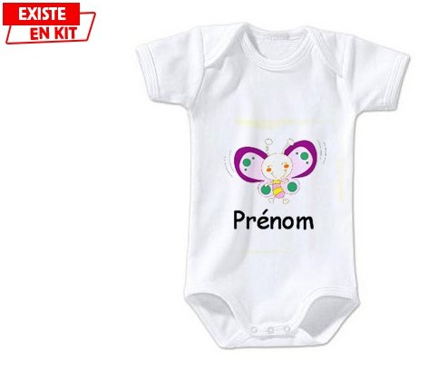 Body personnalisé Papillon souriant (fille) + prénom avec impression en couleur de fabrication européenne et composés à 100 % du coton le plus doux, il est également conçu pour être aussi pratique que joli.