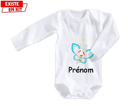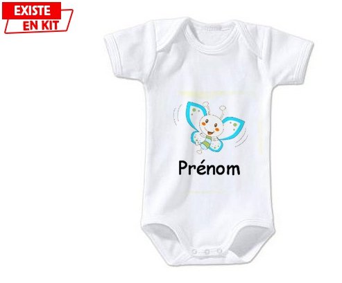 Body personnalisé Papillon souriant (garçon) + prénom avec impression en couleur de fabrication européenne et composés à 100 % du coton le plus doux, il est également conçu pour être aussi pratique que joli.